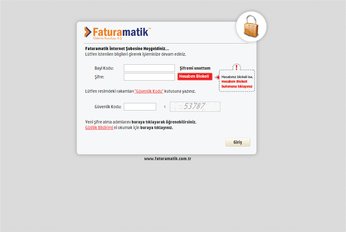 Şifrenizi unuttuysanız Şifremi Unuttum butonuna tıklayınız Hesabınız blokeli ise Hesabım Blokeli butonuna tıklayınız